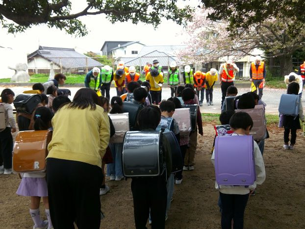 子どもたちの安全を守るため、たくさんの地域の皆さまが1年生の下校を見守ってくださっています。温かい声かけで子どもたちを励ましてくださるとともに、横断歩道の渡り方や道路での歩き方など、交通ルールについても優しく教えていただき、子どもたちは安心して下校することができています。地域の皆さまの支えが、子どもたちの成長と安全につながっています。いつも本当にありがとうございます。