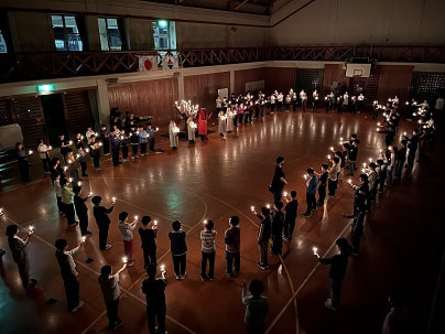 5年生が10月16日、17日に、山口徳地青少年自然の家で宿泊学習を行いました。1日目は、あいにくの天気でしたが、学級でTAPを行い仲間と協力して活動することができました。また、夜は、キャンドルサービスで気持ちを落ち着け感謝の心をもつことができました。キャンドルサービスの後は、学年全員でクイズやじゃんけん列車など楽しい思い出をつくることができました。