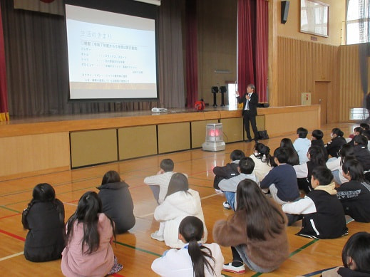 2月3日、常盤中学校から校長先生と生徒指導主任の先生にお越しいただき、6年生への常盤中学校説明会を行いました。学校の様子や、先輩方からのメッセージなどの動画を動画で見せていただき、お二人の先生から実際の様子を説明していただきました。最後は、質問コーナーがあり、服装のことや自転車のことなどについて答えていただきました。中学校のことで心配な事があったひとも、少し安心できたのではないでしょうか?まずは、健康に卒業まで過ごすこと、小学校での勉強に取り組むことを意識して、準備をしていきましょう。
