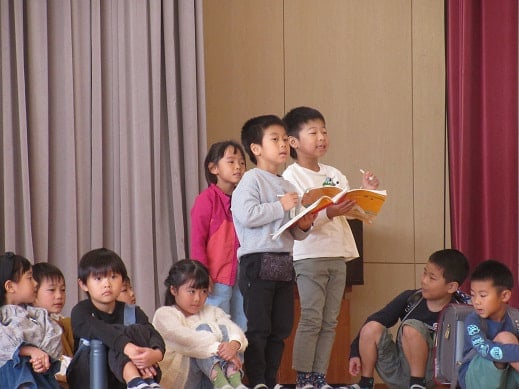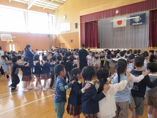29日に、にこにこ交流会(幼保小交流会)があり、聖和幼稚園のみなさんと、恩田幼稚園のみなさんが、小学校に遊びに来てくれました。
