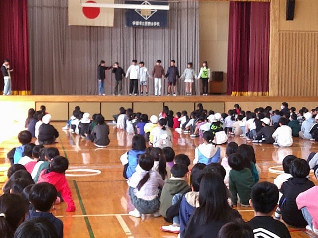 6日に秋の集会がありました。体育館でフラフープリレーやじゃんけん列車を行いました。いろいろな学年の友達や、新しい友達と仲良くなることができました。集会委員のみなさん、ありがとうございました。