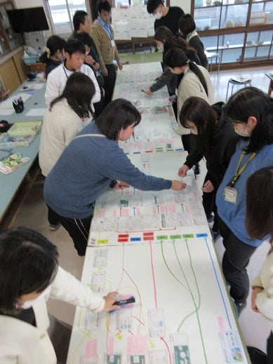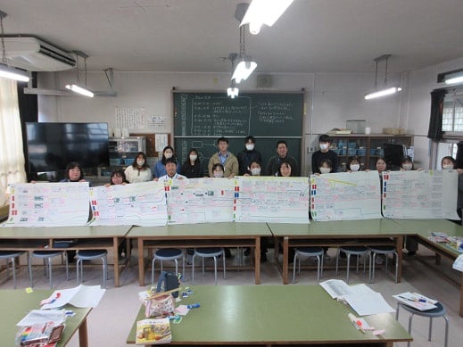 本校は、常盤中学校と連携しており、お互いの学校を教員が訪問してつながりを意識した学習に取り組んでいます。そこで、校内でも算数の各学年の学習内容のつながりを意識するための自主研修会を行いました。算数の授業で子どもたちがどんなことに困っていたかを振り返ったり、どの学習とどの学習がつながっているかを確認したりしました。教員もしっかり勉強し、子どもたちに力をしっかり身に付けさせたいと思っています。