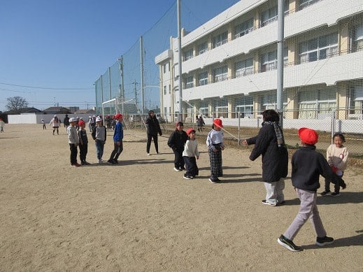 14日、今年初のおひさまクラブ主催「学校を遊ぼう」がありました。寒い中でしたが、たくさんの地域の方や愛育会のみなさんが子どもたちのために集まってくださいました。「子どもは風の子」と言いますが、元気いっぱい体を動かし外遊びを行いました。健康な体をつくるためにも、子どものうちにしっかりと体を動かして遊ぶことが大切です。