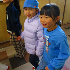 1年生と新川保育園・桃山保育園の年長さんの交流がありました。はじめに自己紹介をしあってから、手を繋いで一緒に学校探検をし…