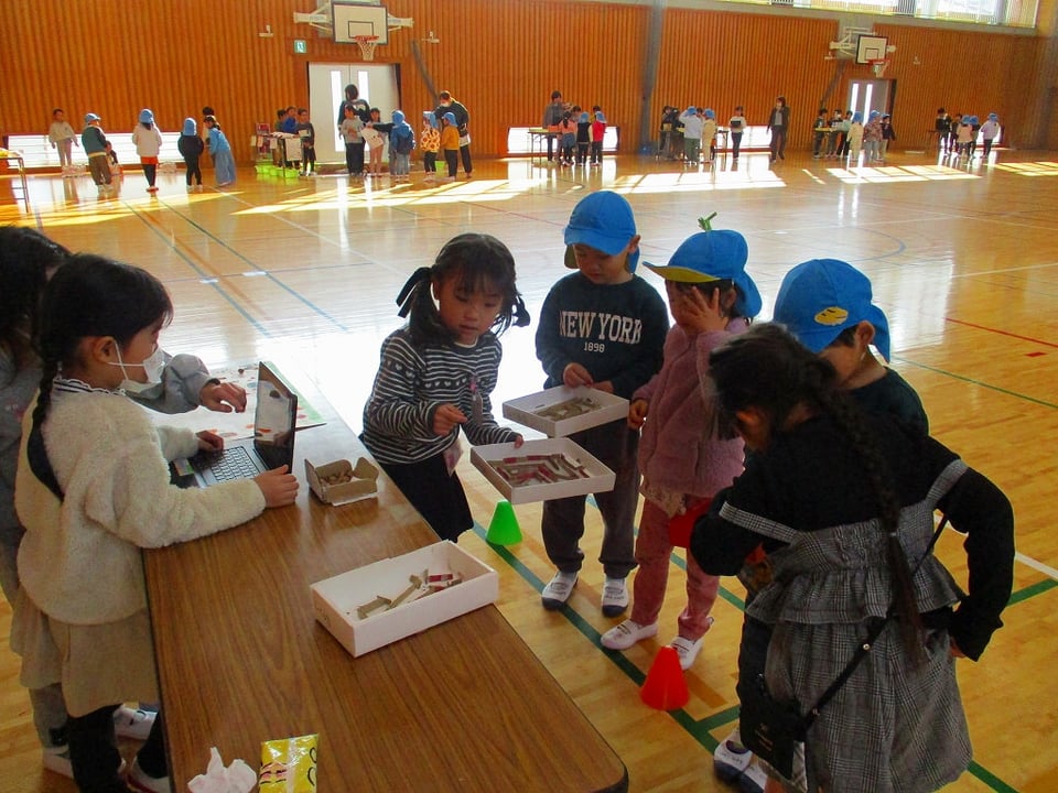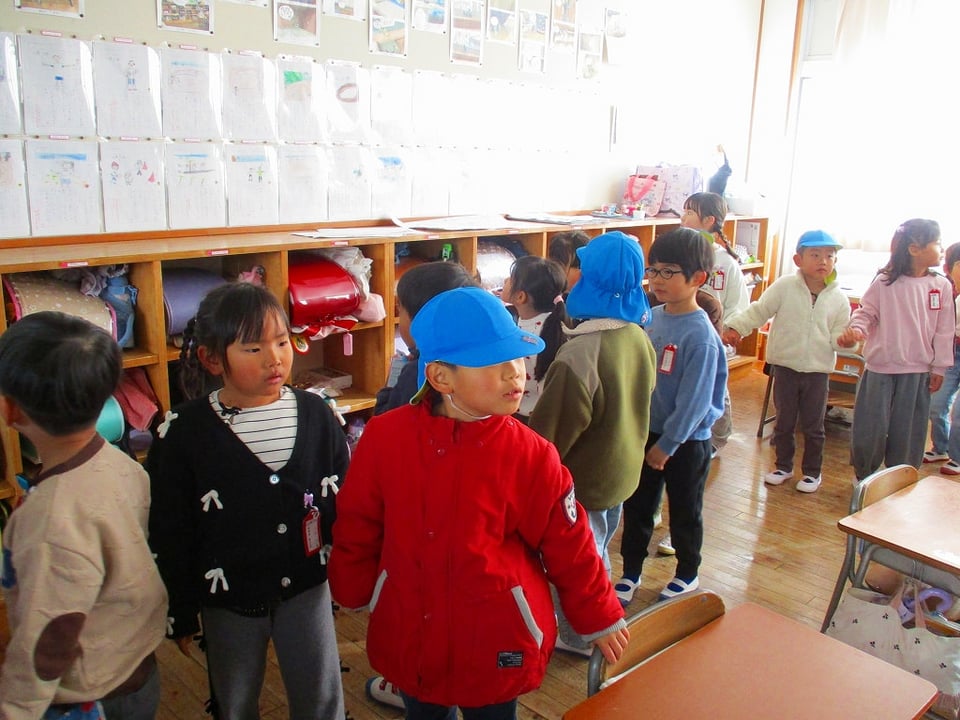 1年生と新川保育園・桃山保育園の年長さんの交流がありました。はじめに自己紹介をしあってから、手を繋いで一緒に学校探検をしたり、一年生が考えたゲームをしたりしました。1年生が年長さんに優しく接する姿に、成長を見ることができ、ほほえましく思えました(^^)