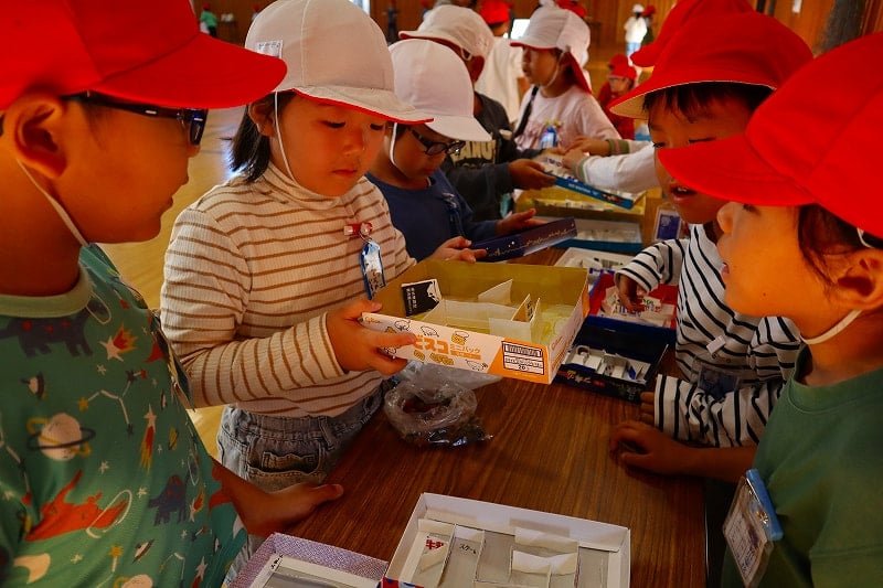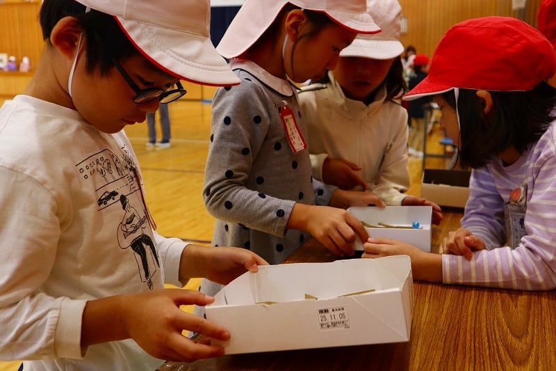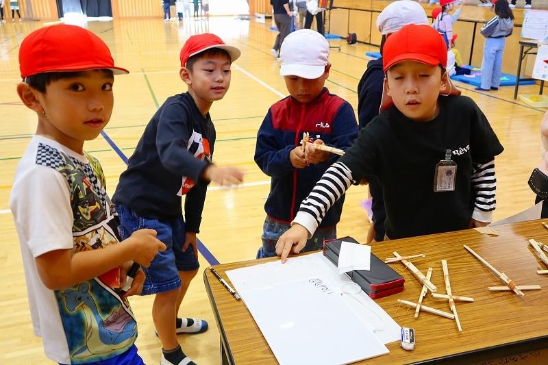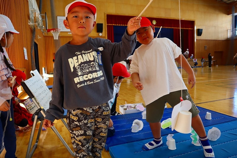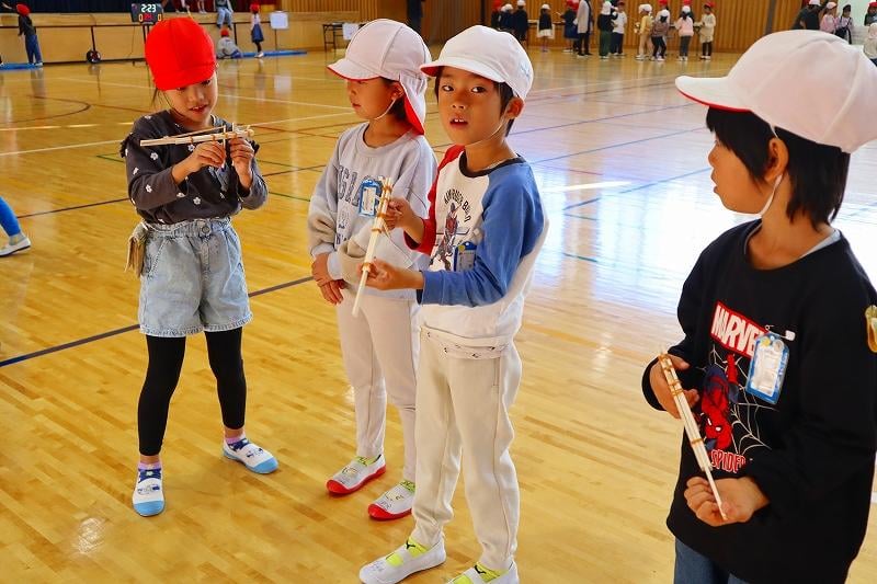 2年生が1年生を招待して、「おもちゃランド」を開きました。2年生が楽しい手作りおもちゃを作り、1年生に遊ばせてあげるという、毎年恒例の生活科の企画です。おもちゃを作った2年生は、少し得意げに遊び方を1年生に説明していました。今年の「おもちゃ」は、出来栄えが良いのがそろっていたように思います。1年生も、とても嬉しそうに遊んでいました(^^)/