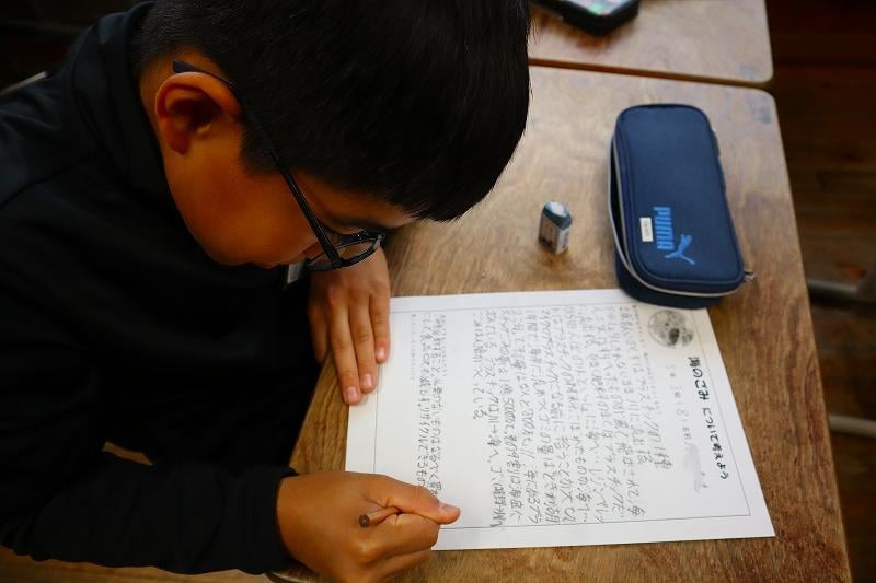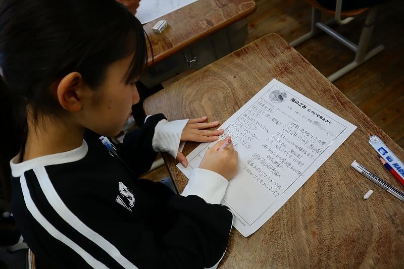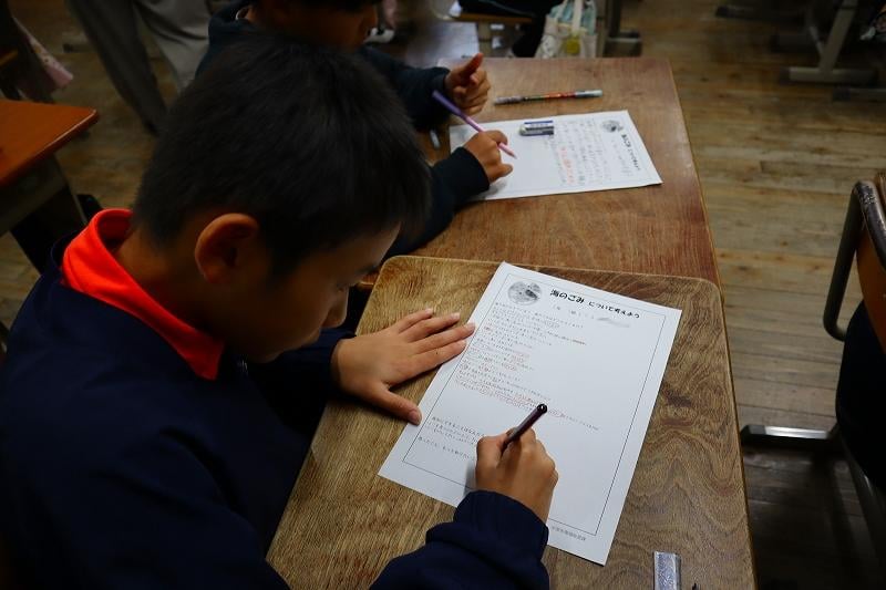 5年生の「ごみ育」がありました。現在、海洋プラスチックごみの問題が地球規模で深刻化しています。マイクロプラスチックは生態系へ大きな影響を与えます。いま、小学生の私たちができることを一生懸命に考えました。
