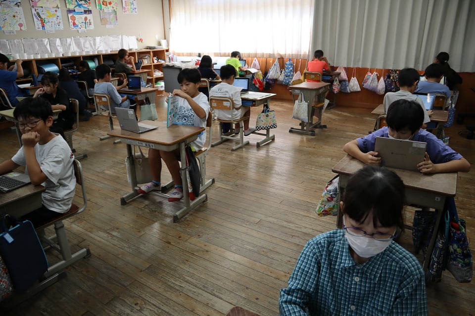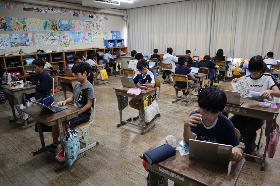 5年生が、山口県学力定着状況確認問題をCbt(Computer Based Testing:コンピュータ上で実施される試験)で行いました。6年生は、一昨日実施しました。どのクラスも、とても集中して取り組んでいました。パソコンの扱いは、とても上手でしたが、問題には四苦八苦していました(>_<)頑張ったね!