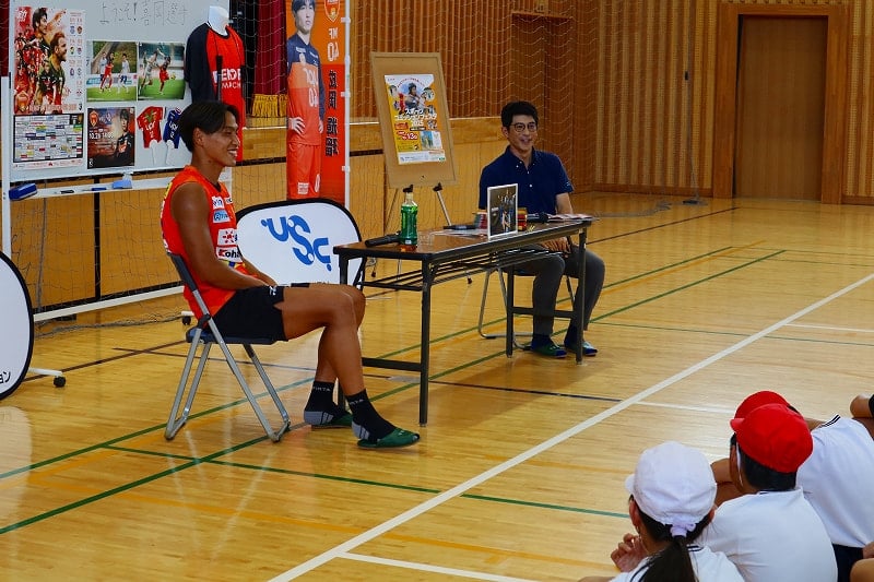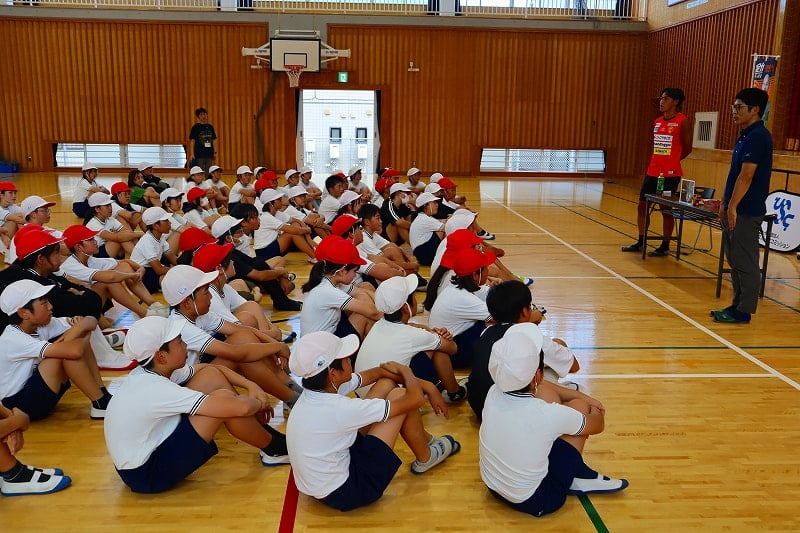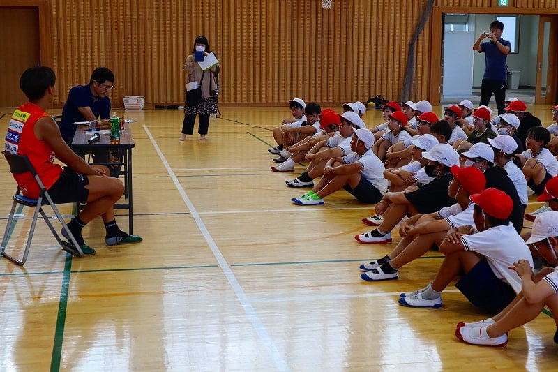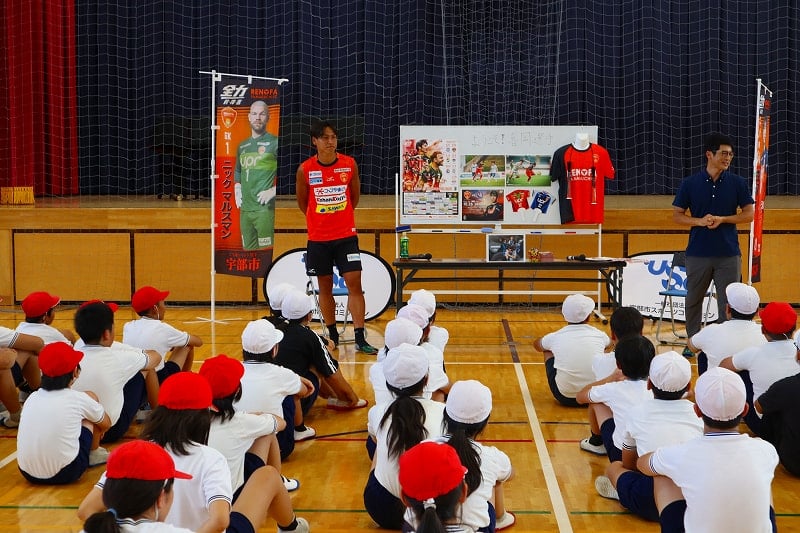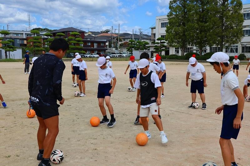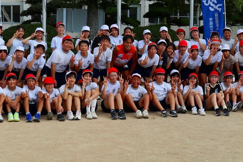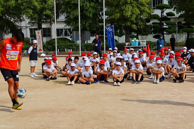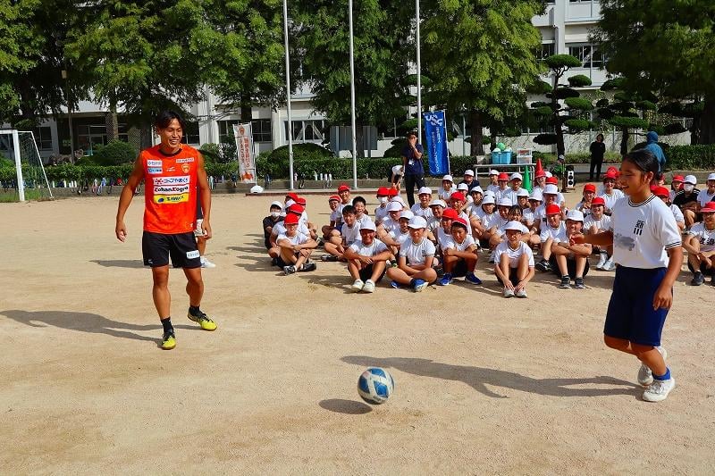 子どもスポーツ夢教室がありました。レノファ山口の喜岡佳太選手とレノファのスタッフのみなさんにご来校いただき、5校時はサッカー教室、6校時はお話を聞く時間を過ごしました。喜岡選手は、「高校の時にプロへの決意を固めたこと」「自分が納得するまでやり続けるようにしていること」「支えてくれた両親への感謝の気持ちが、挫折したときの原動力になる」などなど、これからの子どもたちの支えになるようなお話をたくさんしてくださいました。子どもたちも、目をキラキラさせながら聞いていました。貴重な時間を、ありがとうございました!