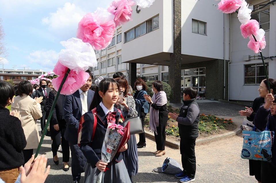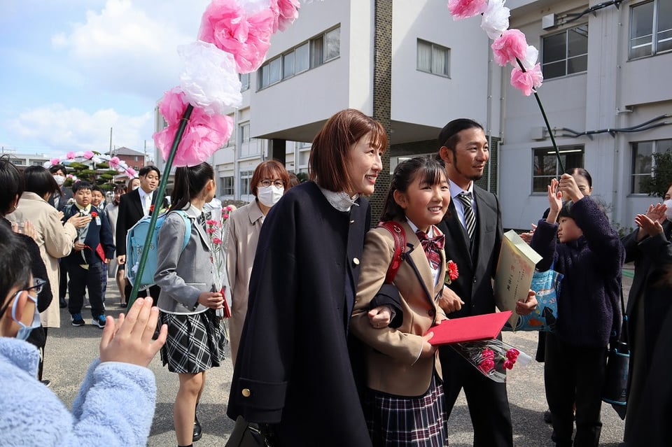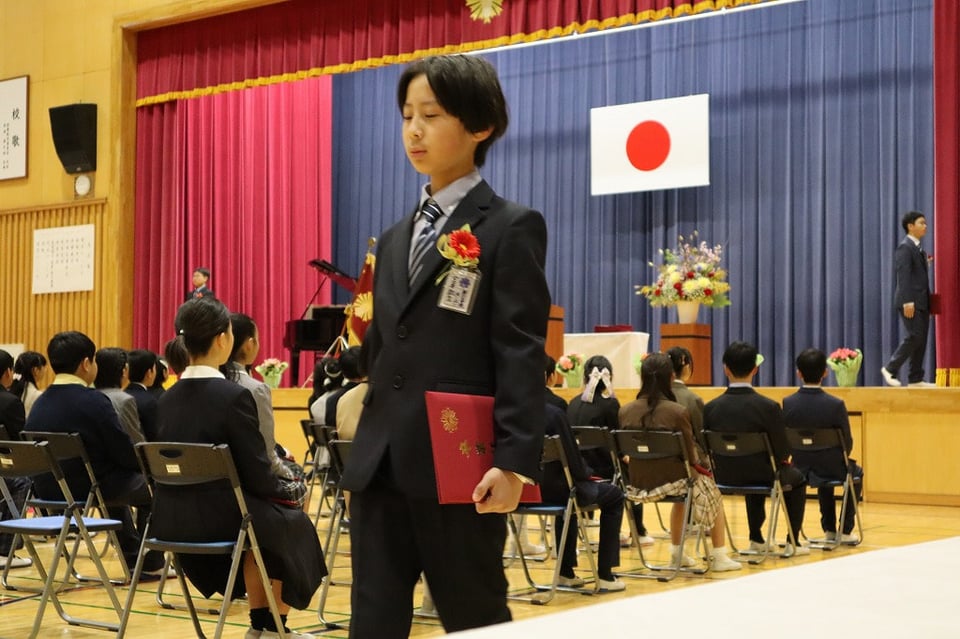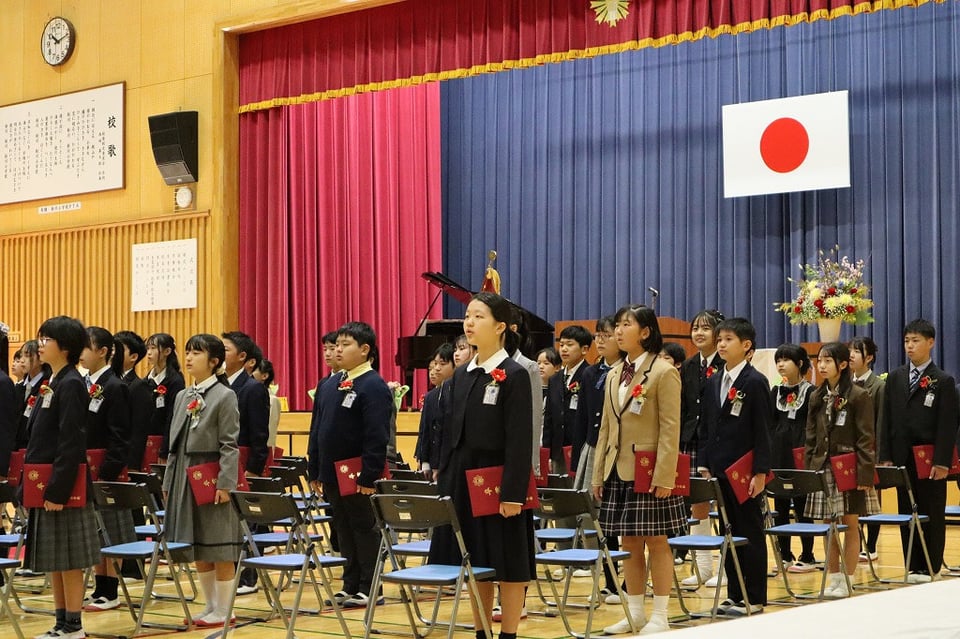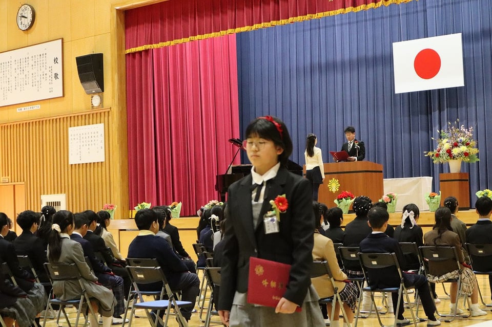令和7年度、第111回 卒業証書授与式が挙行されました。卒業生は立派な姿勢で証書を受け取り、門出の言葉で6年間の思い出を語り、心を込めて歌うことができました。卒業式を良いものにしようと、5年生も大きな声で呼びかけと歌を頑張りました。みんなの心が卒業のお祝いで一つになり、心が洗われるような式でした。中学校でも頑張ってね!