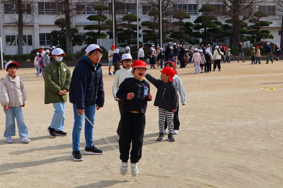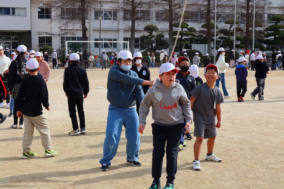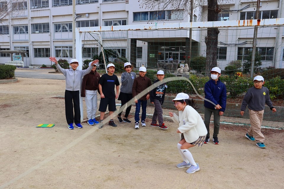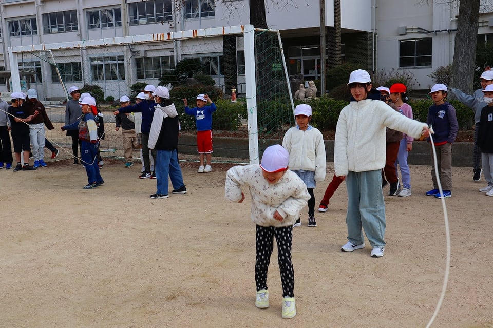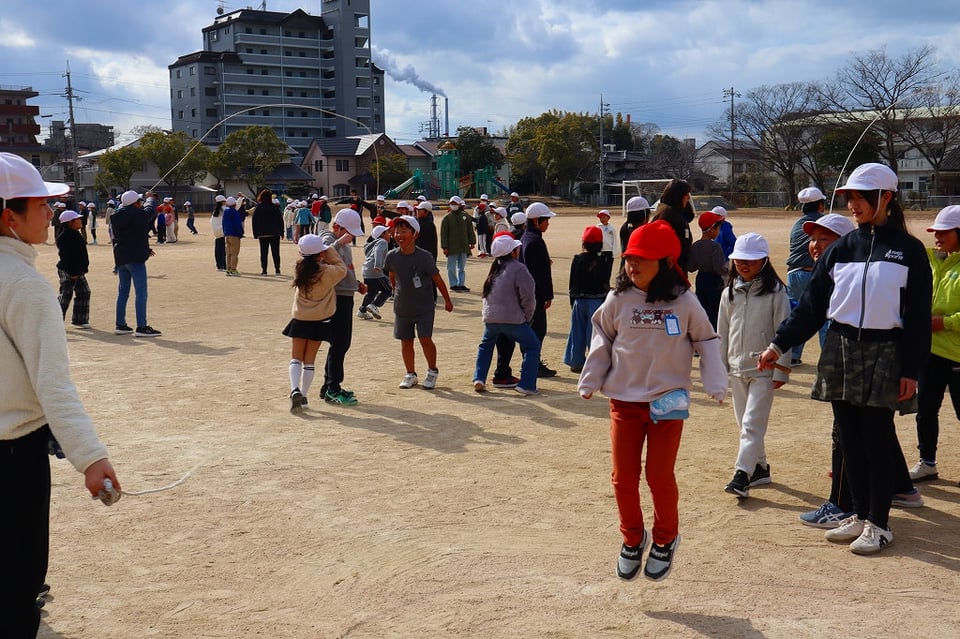 来週の長縄集会の練習の最終日でした。とても寒い日でしたが、みんなが集合すると太陽が出てきて、少し暖かくなりました。低学年を跳ばせてあげようとする、6年生の優しい掛け声が響き、心もポカポカ温かくなりました!(^^)!