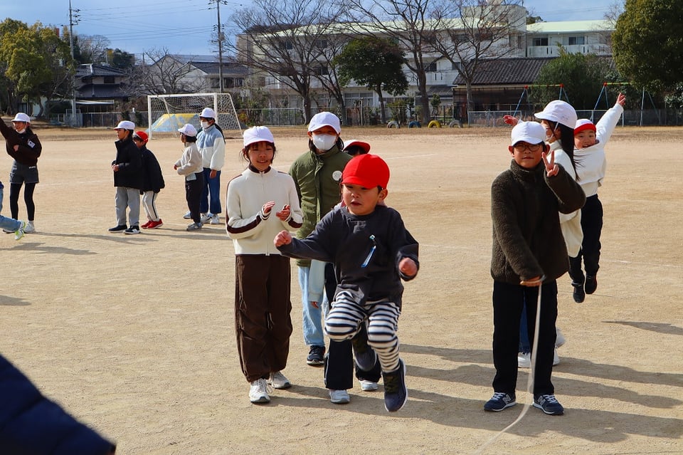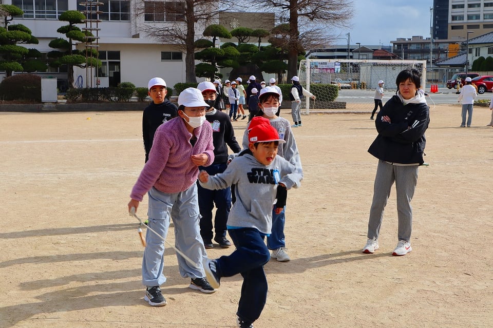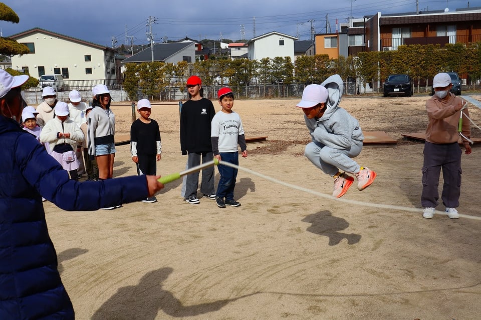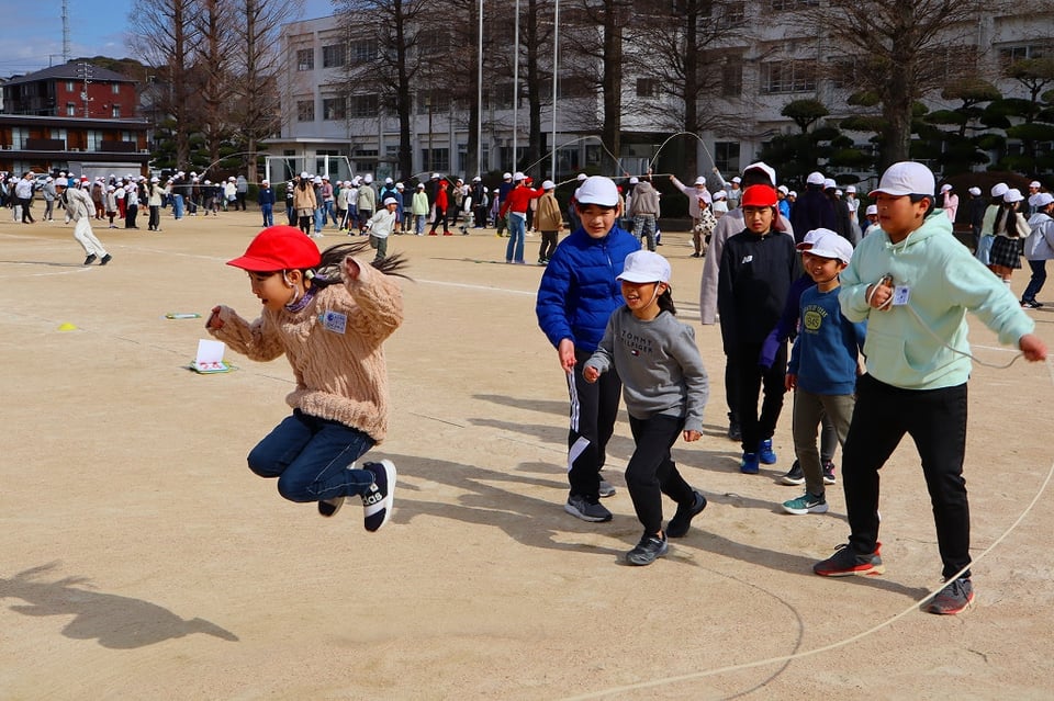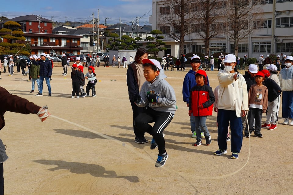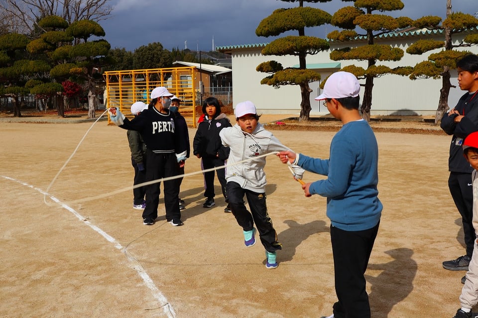 来週の長縄集会の練習の最終日でした。とても寒い日でしたが、みんなが集合すると太陽が出てきて、少し暖かくなりました。低学年を跳ばせてあげようとする、6年生の優しい掛け声が響き、心もポカポカ温かくなりました!(^^)!