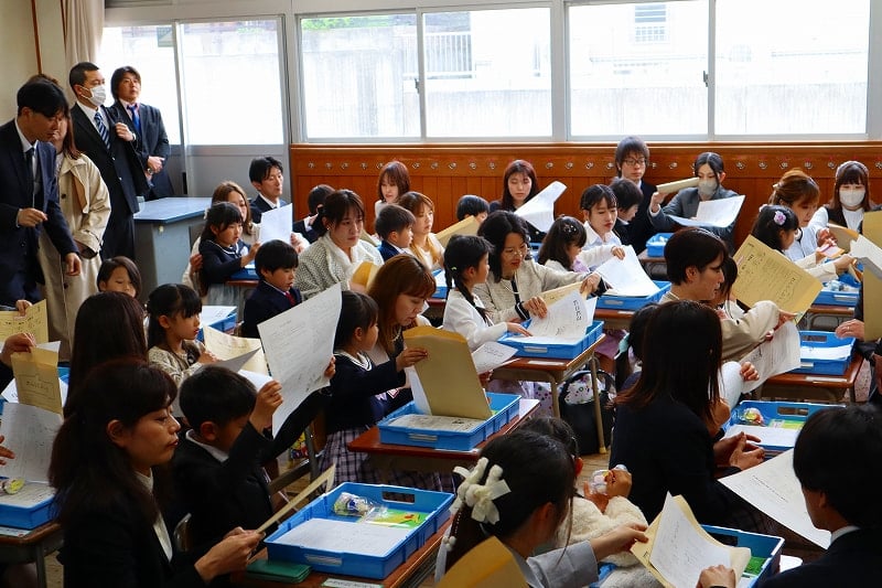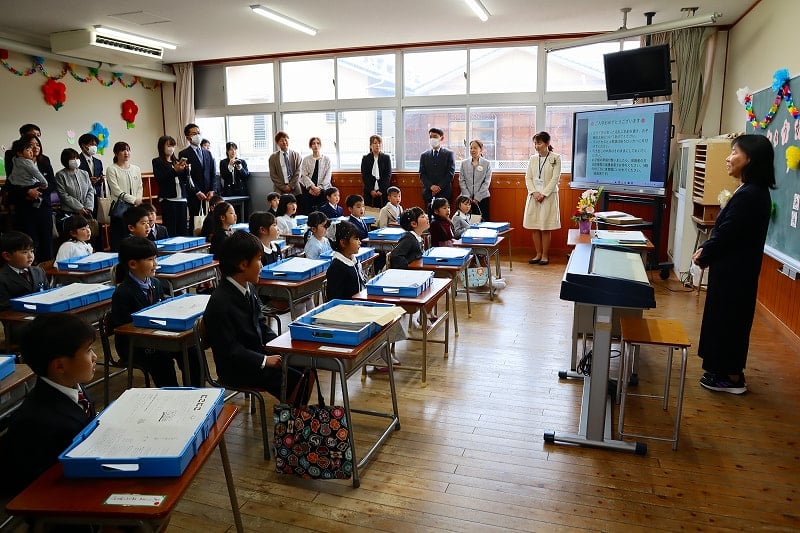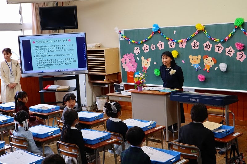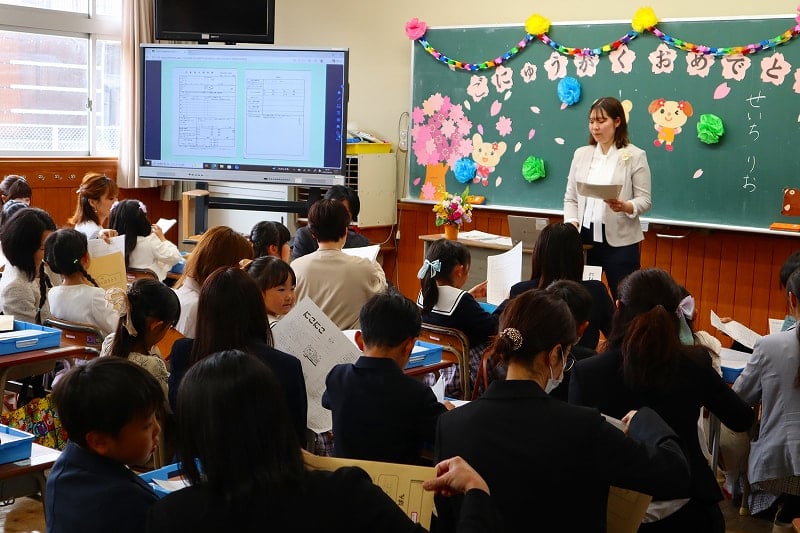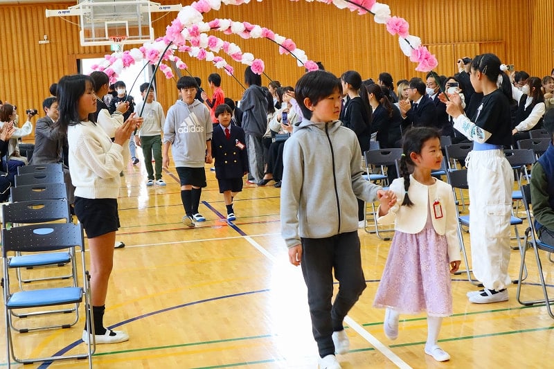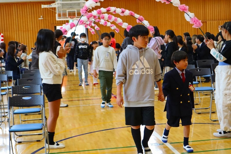 令和8年度の新1年生の入学式が行われました。6年生と一緒に手をつないで体育館に入場した時はドキドキ。退場では、今度は担任の先生と一緒に、にこにこ笑顔で教室に向かう姿が見られました。