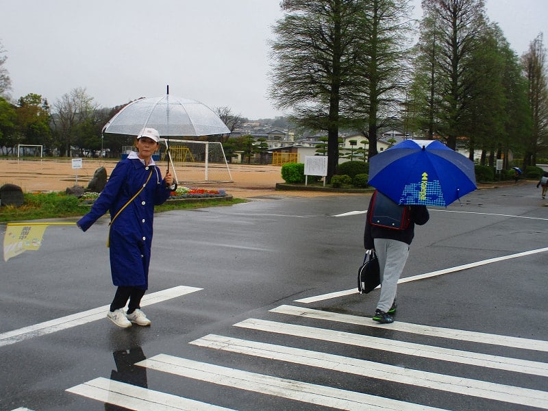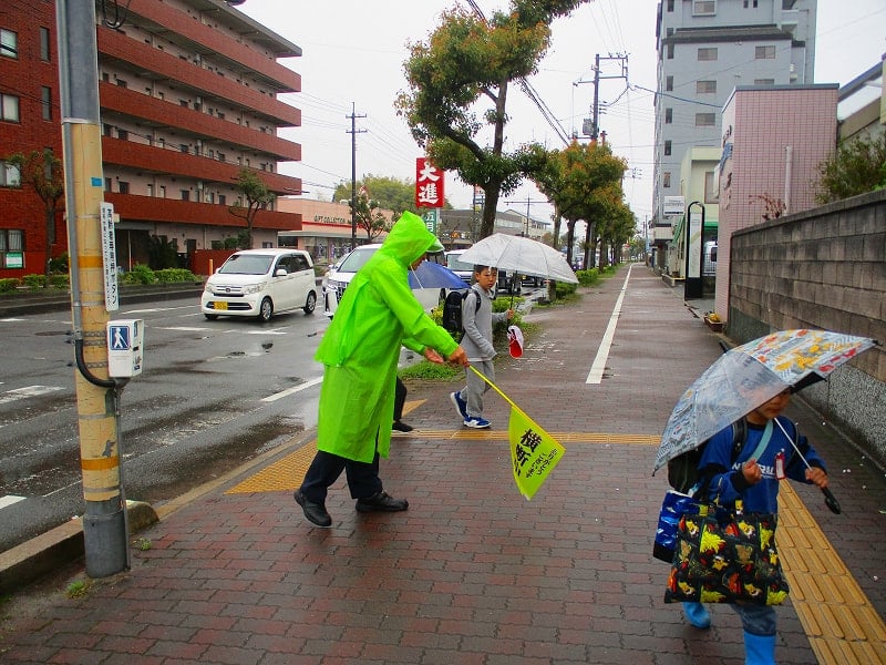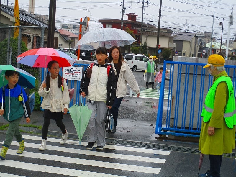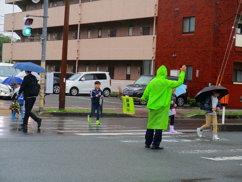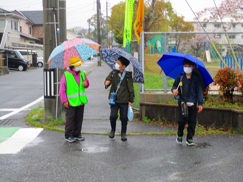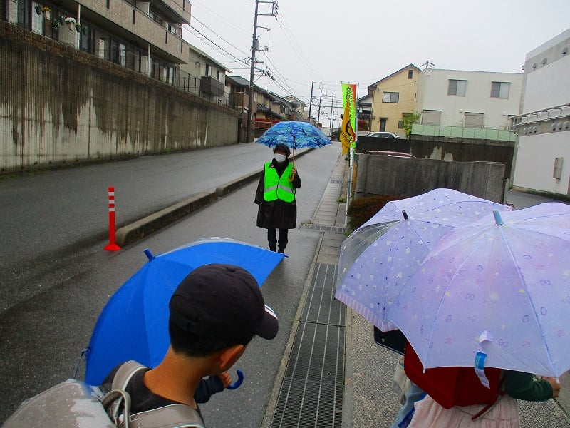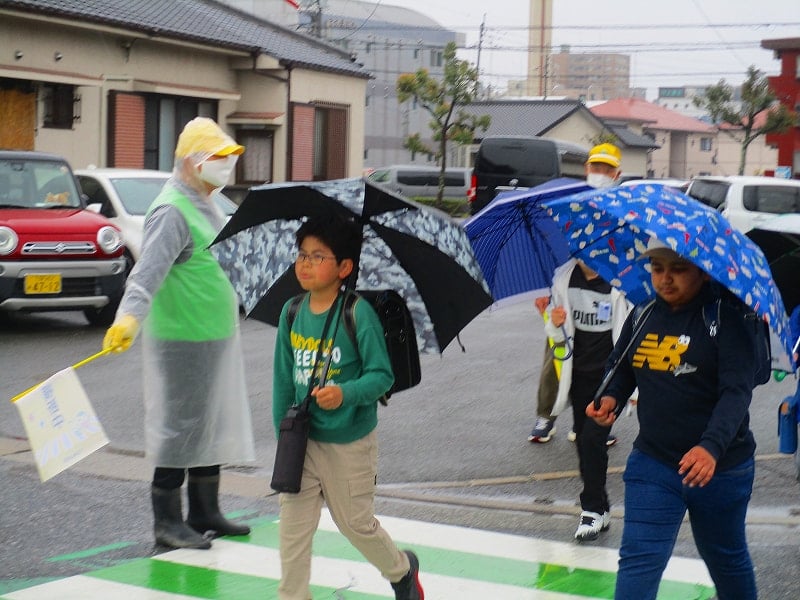 今日も、雨の中の登校でしたが、新川小は見守り隊の方々や保護者の方々が温かく見守ってくだっています。