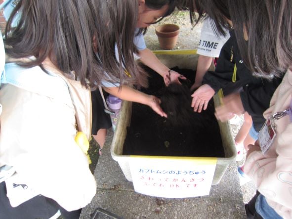 飼育できる容器を持ってきた人には、幼虫を2匹渡しています。大人気です。