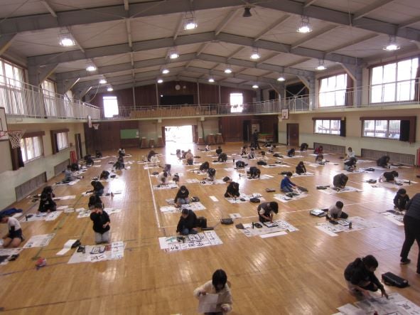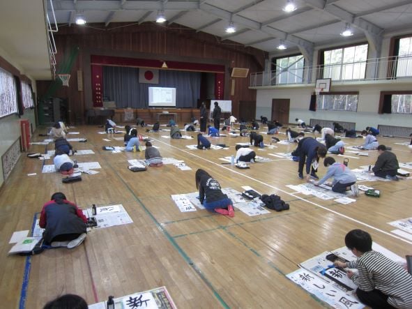 体育館にゆったりと流れる「春の海」の調べの中、5年生が一年の始まりを飾る書初めに取り組みました。 課題は「新しい風」。 子どもたちは一画一画に思いを込め、真剣な表情で筆を運んでいました。広い体育館に響く静かな筆音と、凛とした空気。 書き上げた作品を見つめる姿からは、新しい一年への意気込みが伝わってきます。 5年生が吹かせる「新しい風」が、常盤小学校にさらに豊かな学びをもたらしてくれそうです。