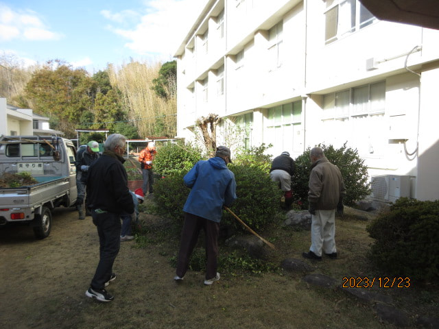 常盤まちづくりサークルの方がフジバカマの刈り込みと追肥、樹木の剪定をされました。