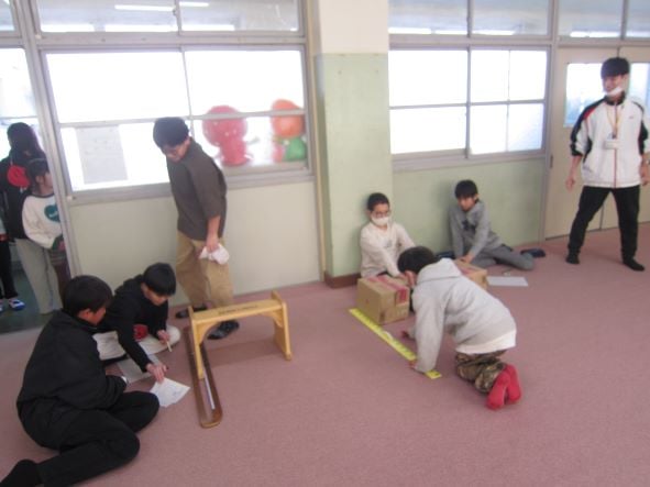 体育委員会の企画で【ゴム人間コンテスト】が行われています。昼休み、学年ごとに日を決めて長座体前屈に挑戦です。サポーターの方々も後日来校予定です。
