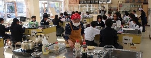 11月4日(火)・7日(金)、1年生は、家庭科の授業で調理実習を行いました。メニューは、生姜焼きで、班で協力して作業を進め、完成させていました。この実習には、地域の方々にお手伝いにきていただきました。ありがとうございました。