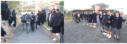 12月19日(金)、生徒会役員(前)が推進してきた朝のあいさつ運動がフィナーレを迎えました。目標参加生徒数100人をめざし、1年間、全校生徒に呼び掛けを行ってきた取組でしたが、最終日は、170人の参加があり、見事、目標達成となりました。何より素晴らしかったのは、運動に参加し、笑顔であいさつをする生徒たちの姿でした。そこには、想いを共にし、仲間となった集団がありました。笑顔あふれる集団を生み出した生徒会役員の皆さんを、心から尊敬します。ありがとう、生徒会役員の皆さん。