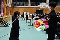 在校生代表の生徒の送辞は、言葉の端々から卒業生に対する心からの感謝が伝わる素晴らしいものでした。卒業生代表の生徒の答辞は、中学校生活での思い出を振り返るとともに、支えてくれた仲間や家族、教職員への感謝の気持ちがあふれていました。1年生の時に、急逝された山崎先生にも語りかけられ、多くの人が涙を流している姿が心に残っています。
