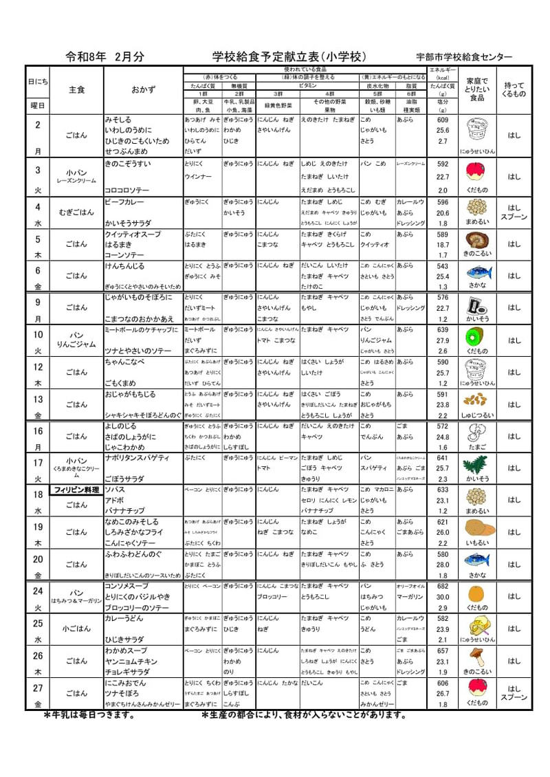 > 令和7年度2月献立表