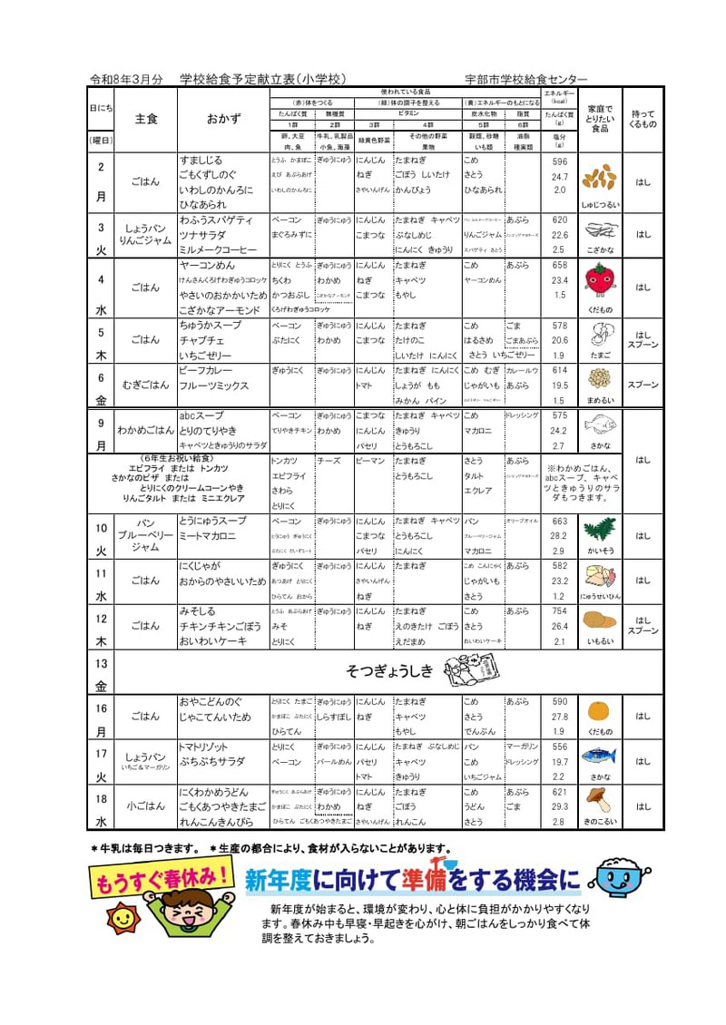 令和7年度3月献立表